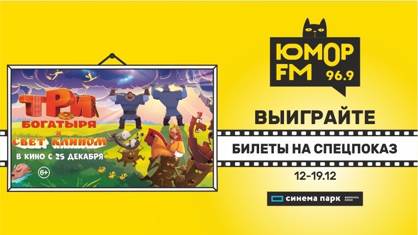 «Три богатыря и свет клином» с Юмор FM 20 декабря «Юмор FM Рязань» приглашает слушателей и партнёров на фильм «Три богатыря и свет клином» Подробнее ...