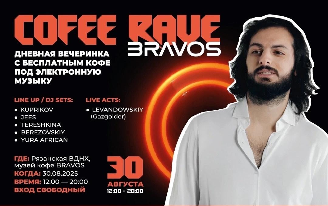 29 и 30 августа на Рязанской ВДНХ у музея кофе «BRAVOS» прощаемся с летом под аккорды музыки и вкус лучшего кофе от топовых бариста Рязани. Мероприятие проходит при поддержке Радио Record.